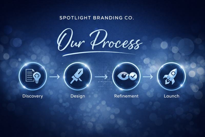 Feeling unsure about branding? At Spotlight Branding Co., we replace guesswork with guidance. Our structured process removes the confusion, providing clear, manageable steps to transform your vision into an aligned, impactful, and unforgettable brand presence.
